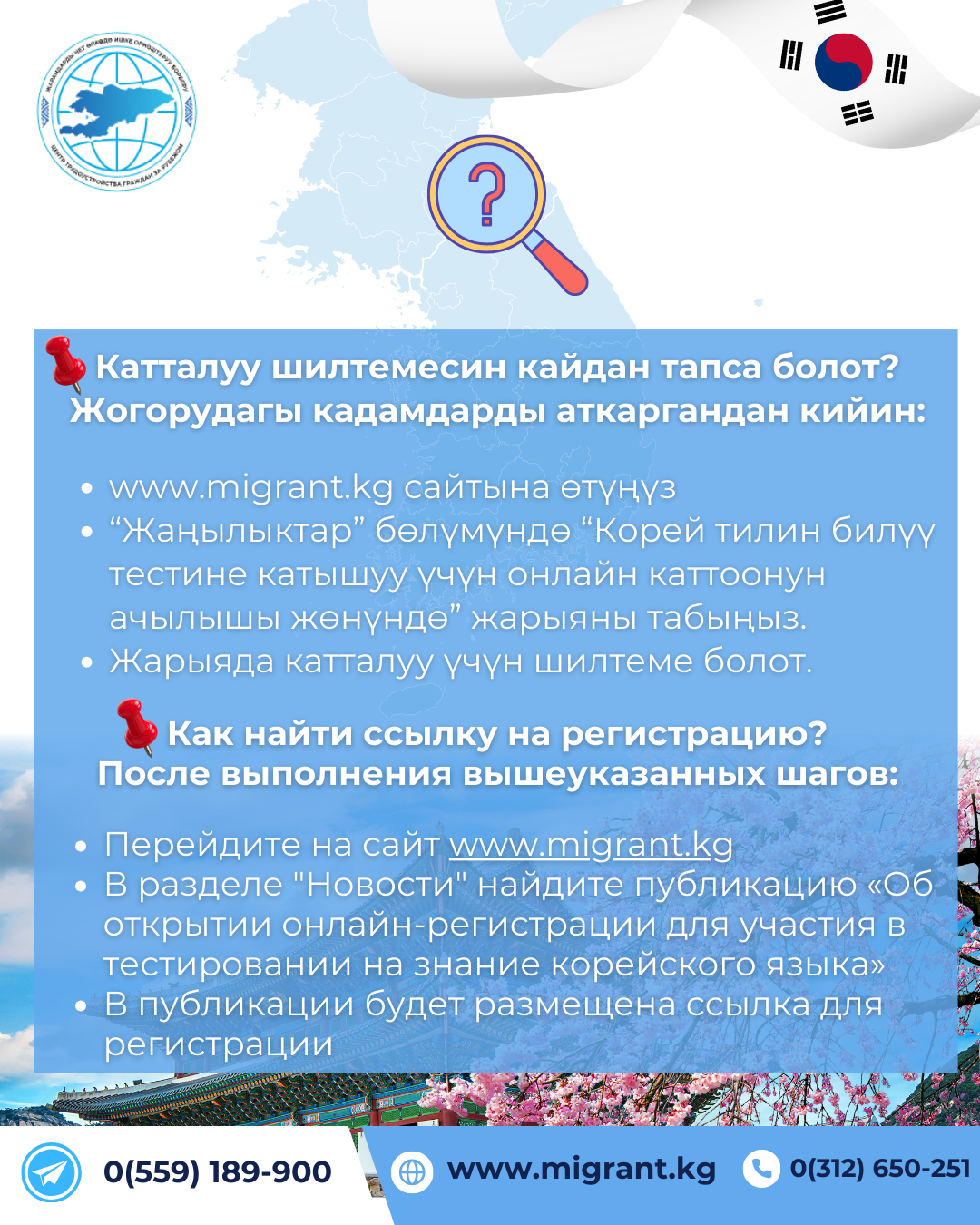 - Корей тилин билүү тести (EPS-TOPIK) программасына катышуу үчүн онлайн каттоодон өтүү боюнча нускама /
