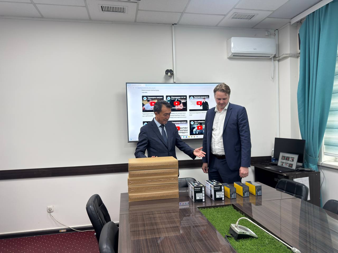 Жолугушуунун алкагында ЕККУнун Программалык офиси Борбордун ишинин натыйжалуулугун жогорулатууга жана калкка көрсөтүлүүчү кызматтардын сапатын жакшыртууга багытталган техникалык жабдуулар түрүндө гуманитардык жардам көрсөттү.