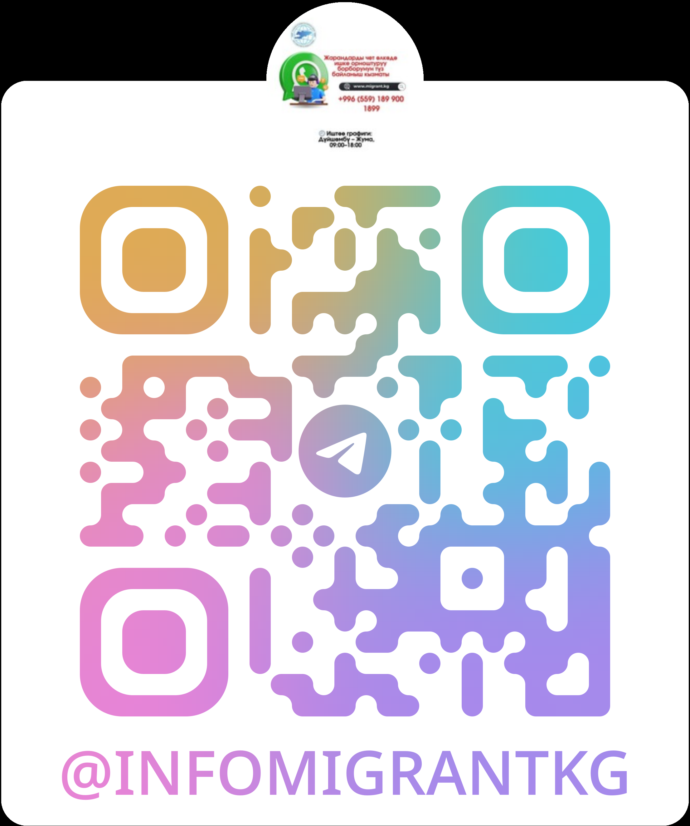 • же Telegram издөөсү аркылуу Борбордун расмий аккаунтун табууга болот: infomigrantkg.