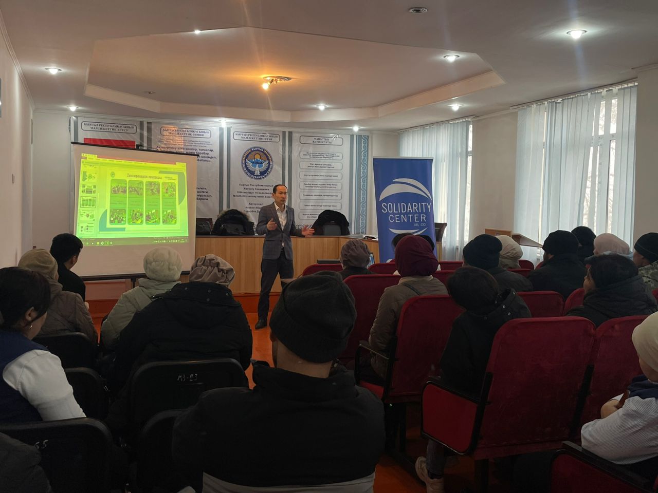 2025-жылдын 9-11-декабрында Кыргыз Республикасынын Эмгек, социалдык камсыздоо жана миграция министрлигине караштуу Жарандарды чет өлкөдө ишке орноштуруу борбору «Коопсуз миграция кербени» өнөктүгүнүн алкагында “Solidarity” эл аралык уюмунун колдоосу алдында Чүй облусунун Панфилов, Жайыл, Москва, Ысык-Ата, Сокулук жана Чүй райондорунун тургундары менен жолугушууларды жана көчмө жыйындарды өткөрдү.
