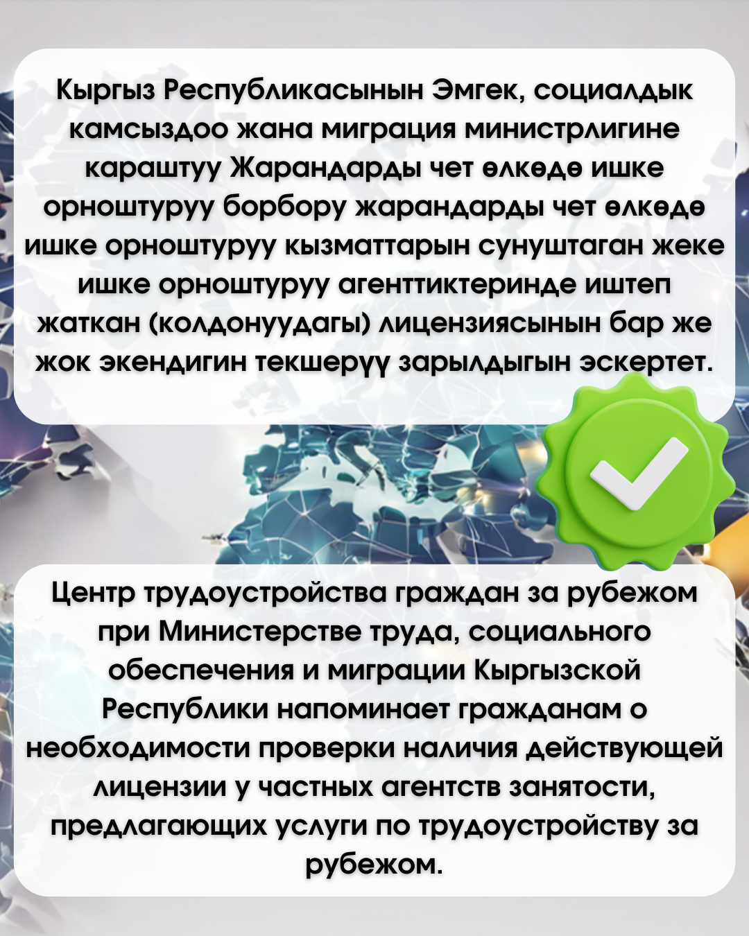 - Перед выездом на работу за границу обязательно проверьте наличие разрешения (лицензии) у частных агентств занятости /